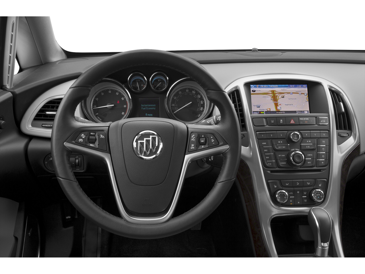 The vehicle features a hands-free Bluetooth® phone system. The rear parking assist technology on it will put you at ease when reversing. The system alerts you as you get closer to an obstruction. Our dealership has already run the CARFAX report and it is clean. A clean CARFAX is a great asset for resale value in the future. The Buick Verano keeps you comfortable with Auto Climate. The leather seats in it are a must for buyers looking for comfort, durability, and style. See what's behind you with the back up camera on this unit. This mid-size car's Cross-Traffic Alert: Safeguarding you from unexpected traffic when reversing. It's Lane Departure Warning keeps you safe by alerting you when you drift from your lane. This unit shines with clean polished lines coated with an elegant white finish. It is outfitted with an OnStar communication system. This mid-size car has a 4 Cyl, 2.4L high output engine.