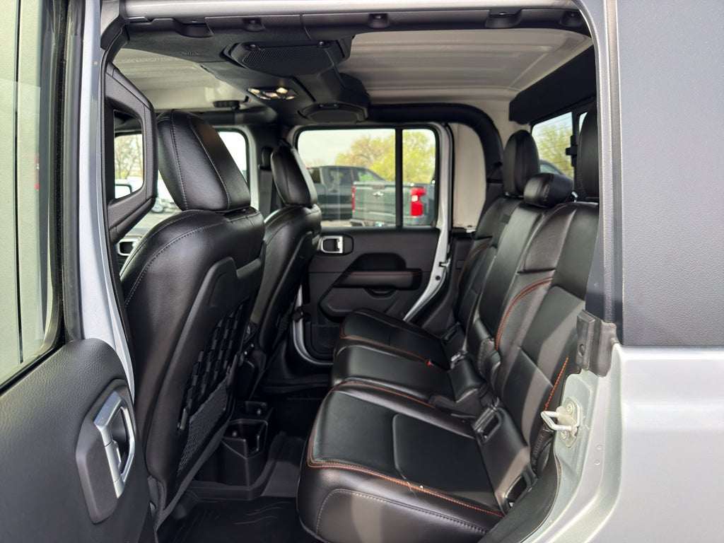 Cold Weather Group: Remote Start System; Heated Front Seats; Heated Steering Wheel. Quick Order Package 24D Mojave. LED Lighting Group: Daytime Running Lamps LED Accents; Front LED Fog Lamps; LED Premium Reflector Headlamps; LED Taillamps; LED Park Turn Lamps. Auxiliary Switch Group: Auxiliary Switches; 240 Amp Alternator. Trailer Tow Package: Heavy Duty Engine Cooling; Trailer Hitch Zoom; Class IV Receiver Hitch; 240 Amp Alternator. Leather Trimmed Bucket Seats. Black 3-Piece Hard Top. MOPAR Heavy Duty Rock Slider with Step Assist. Silver Zynith Clearcoat. MOPAR All-Weather Slush Mats. **Equipment listed is based on original vehicle build and subject to change. Please confirm the accuracy of the included equipment by calling the dealer prior to purchase.**